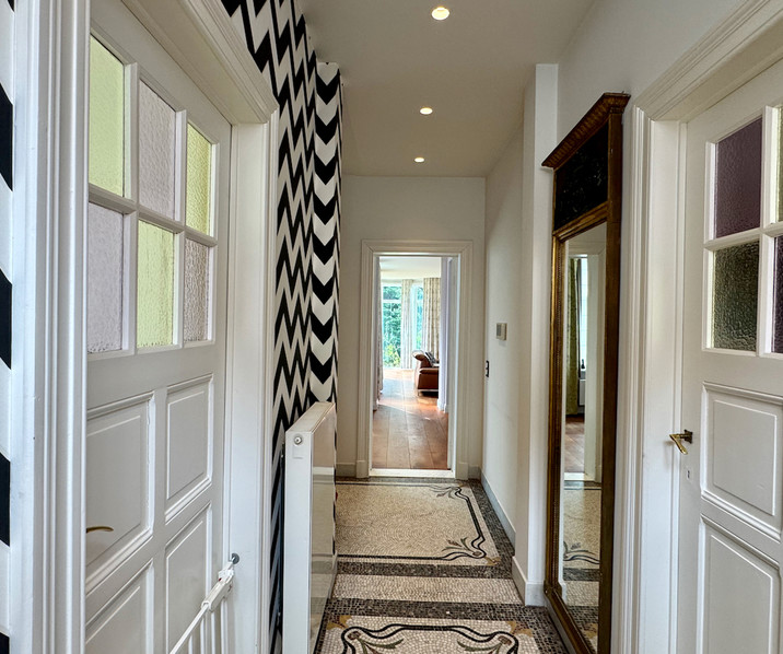 Charmante STADSWONING met TUIN & GARAGE gelegen op wandelafstand van het historische centrum van Brugge en met alle voorzieningen binnen handbereik: winkels, scholen, openbaar vervoer, sportfaciliteiten, … . Deze statige en tot in de puntjes gerenoveerde woning uit de jaren ’20 werd volledig gestript en heropgebouwd met klassevolle en duurzame materialen. Met een grondopp. van 533 m² & een bruikbare vloeropp. van maar liefst 396 m², biedt deze woning ruimte, luxe en karakter in overvloed. Indeling: mooie inkomhal met authentieke vloer en gastentoilet. Lichtrijke leefruimte in parketvloer ingedeeld in een gezellige zithoek met gashaard en prachtig tuinzicht, een eetplaats met leeshoek en een ruime bureauhoek. De high-end ingerichte leefkeuken is uitgerust met Gaggenau-inbouwtoestellen (o.a. oven, stoomoven, koffiezet, kookplaat, vaatwasser, frigo, …) en biedt toegang tot het terras & de tuin. De ruime kelderverdieping, met zicht en toegang tot de tuin, is ingericht met extra keuken en wasruimte en heeft verder nog een polyvalente ruimte ideaal als hobbyruimte, atelier of mancave. Op de 1°V is er de masterbedroom met tuinzicht en een ensuite badkamer (ligbad, dubbel lavabomeubel, toilet). Verder zijn er nog 4 volwaardige slaapkamers verdeeld over de 1ste en 2de verdieping en 2 extra badkamers met hoogwaardige afwerking (inloopdouche, ligbad, dubbele lavabo’s, toiletten).